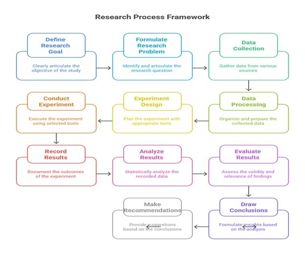 The applied framework guiding the study outlines the systematic steps taken from the initial formulation of the research question to the final evaluation of results. It begins with the identification of the study’s goal and the articulation of the research problem. This was followed by extensive data collection from a variety of sources, including online databases, books, academic journals, educational websites, and expert consultations. The subsequent stage involved the design of the experiment, which included selecting the most appropriate tools and methodologies, determining the sample population, and conducting the actual data-gathering process.