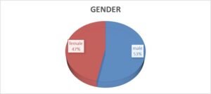 Figure 3 illustrates the gender distribution among the total study participants. The sample comprised 47% females and 53% males, reflecting a balanced representation across genders.